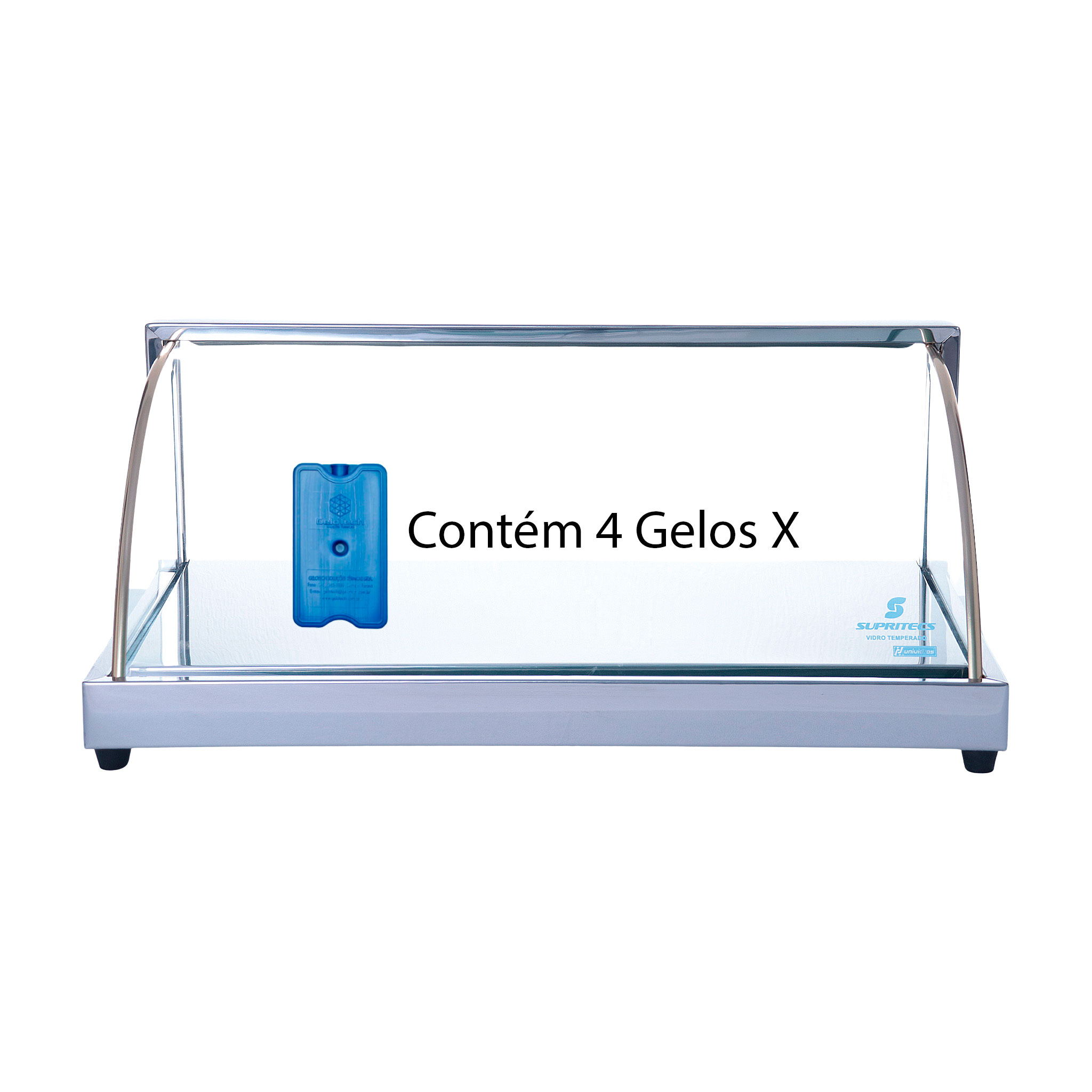 – Sistema Gelo-X: substitui o gelo comum. Seu conteúdo é um gel atóxico com a vantagem de se manter congelado por mais tempo. Ele é reutilizável e quando descongela, não molha.